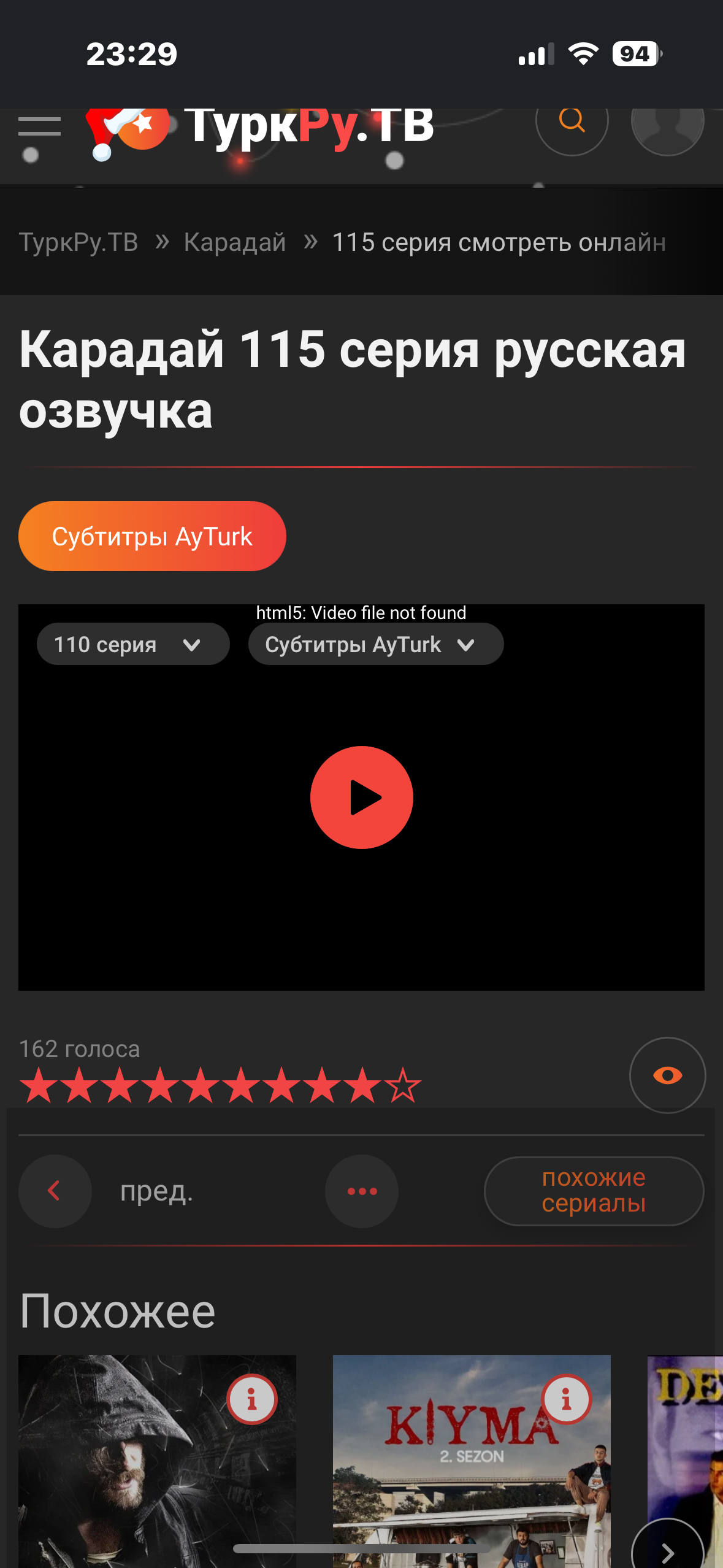 Сейчас зашла сделала скрин, и работает уже,а до этого три дня не могла посмотреть этот сериал ,,файл отсутствует было написано на английском