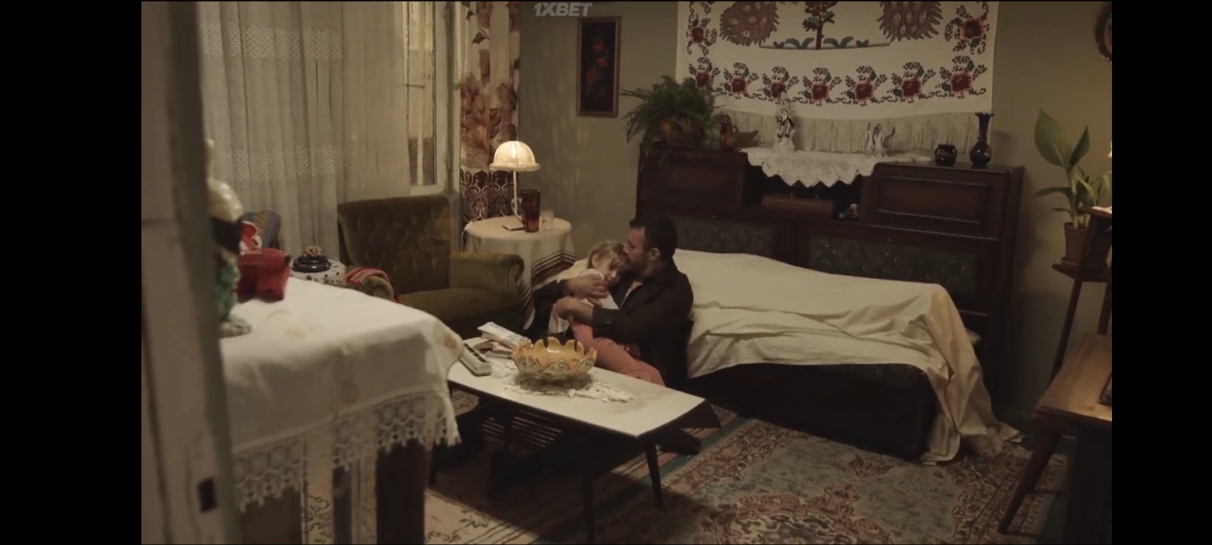 Жену показали на диване в саване на фоне Мустафы с дочкой